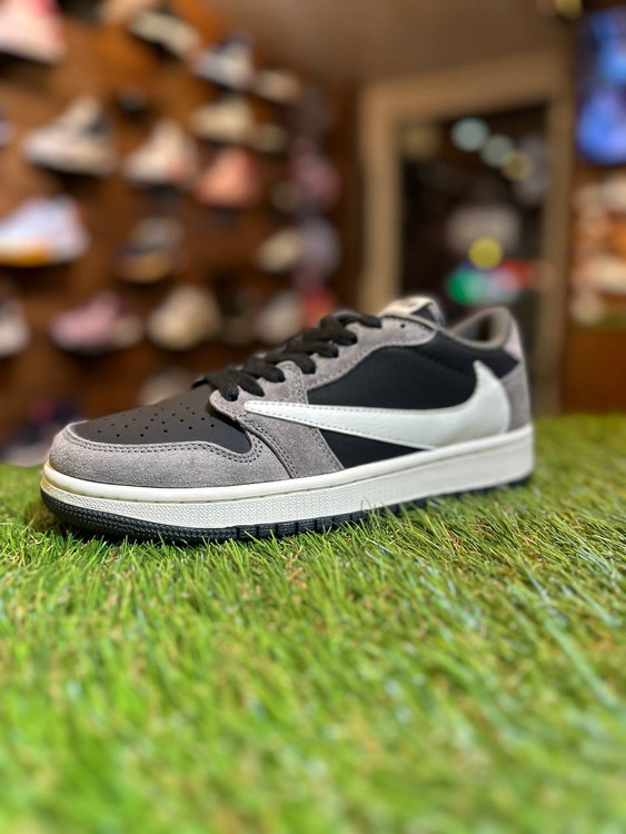 نایکی ایر جردن ۱ ترویس اسکات، از دیگر کتونی های تولید شده در نتیجه ی همکاری نایکی و ترویس است که با رنگ های خنثی طوسی تیره، مشکی و سفید به زیبایی تمام طراحی شده است. این کتونی با داشتن نایکی برعکس سفید که نماد ترویس اسکات است در قسمت بیرونی کتونی همچنین داشتن لوگوی کاکتوس جک بر روی زبانه به رنگ مشکی و ایرجردن در پشت کتونی، تمامی عناصر و جزئیات را به خوبی هرچه تمام تر رعایت کرده است. این کتونی مناسب تمامی استایل های رسمی، کژوال و نیمه رسمی ست که قابلیت ست شدن با همه رنگ لباس را دارد.